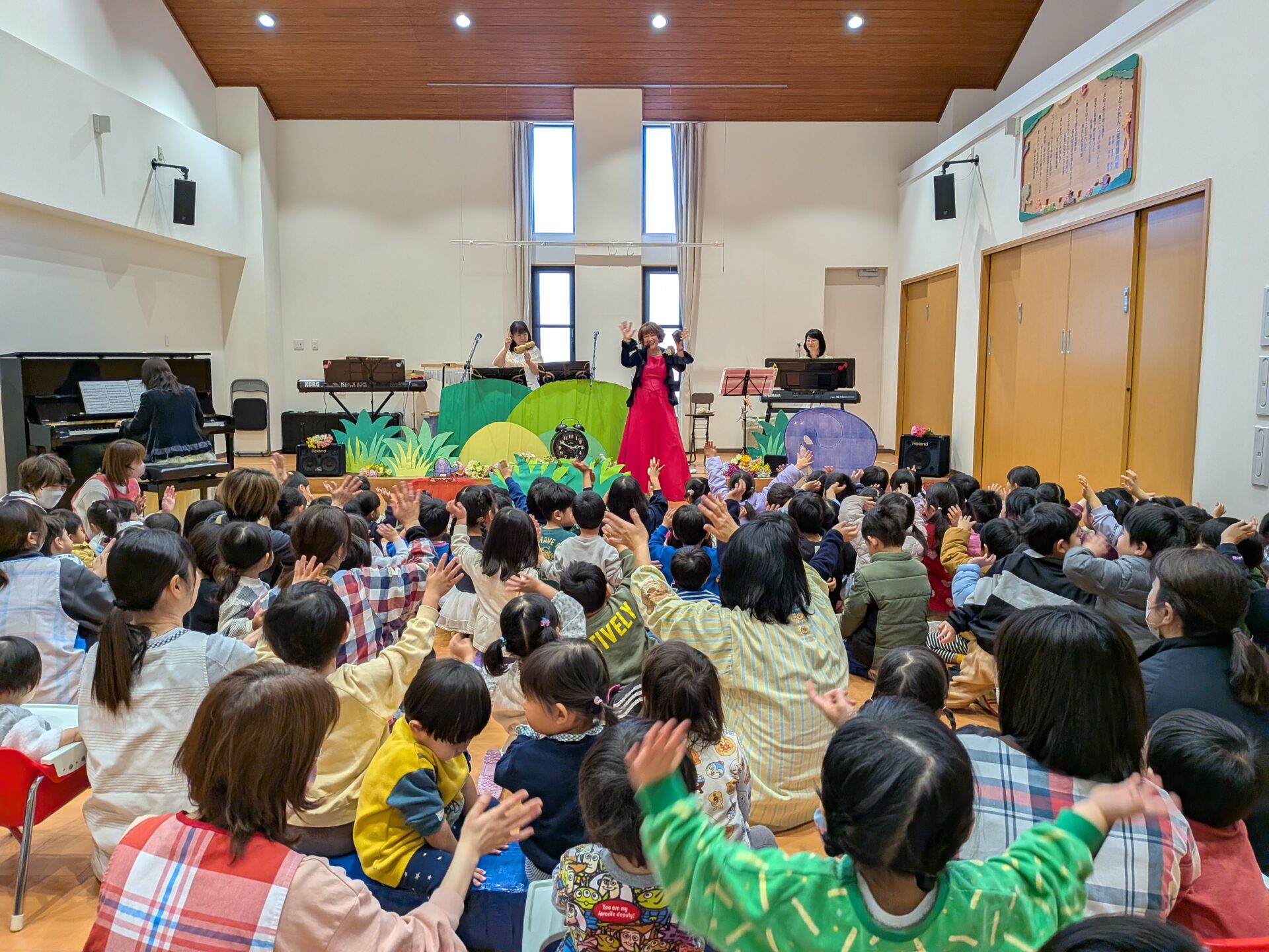 毎年素敵な演奏を聞かせてくれるメロディパフェ&MOEMIさんが、今年も来てくれました。 いつも子どもたちはノリノリですが、今回も大興奮でノリノリでした♪ 様々な楽器で色々な演奏をしてもらい大喜び♬ 曲あてクイズに大喜び🎵 音楽童話館では『ゾウくんのさんぽ』に大喜び(^^♪ 最後まで大興奮で楽しみました。 また楽しい演奏をお願いいたします。